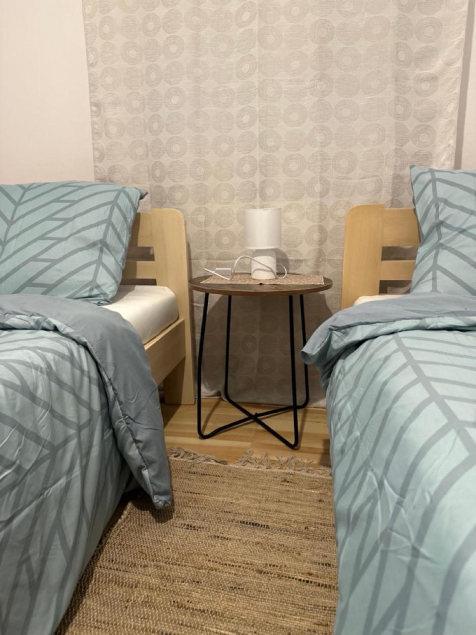 Pokój z 2 łóżkami pojedynczymi i wspólną łazienką. The twin room features a wardrobe and video games, as well as a shared bathroom boasting a shower. In the well-equipped kitchen, guests will find a stovetop, a refrigerator, a dishwasher and kitchenware. The twin room offers a washing machine, a tea and coffee maker, a dining area, a flat-screen TV with streaming services, as well as garden views. The unit has 2 beds. Pokój z 2 łóżkami pojedynczymi - 2 osobowy. Powierzchnia pokoju ok.: 8 mkw. ;