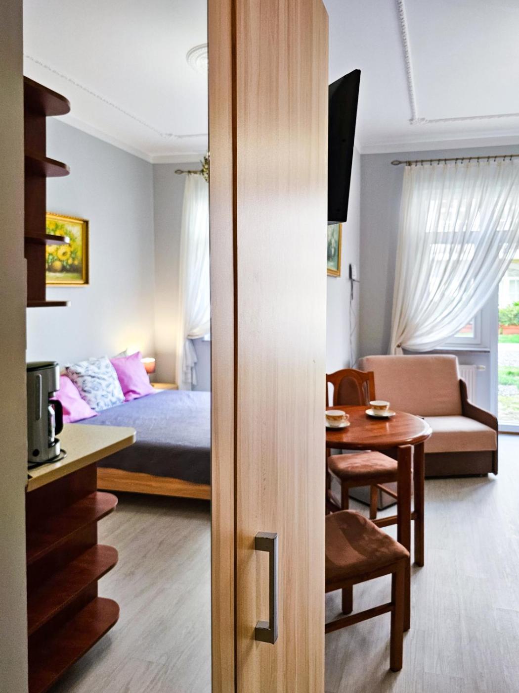 Apartament typu studio z tarasem. This apartment comprises 1 bedroom, kitchenette, a terrace and 1 bathroom with a walk-in shower. The well-equipped kitchenette features a stovetop, a refrigerator, kitchenware and a toaster. This apartment has a coffee machine, heating, a flat-screen TV and outdoor furniture. The unit offers 2 beds. Apartament - 3 osobowy. Powierzchnia pokoju ok.: 25 mkw.