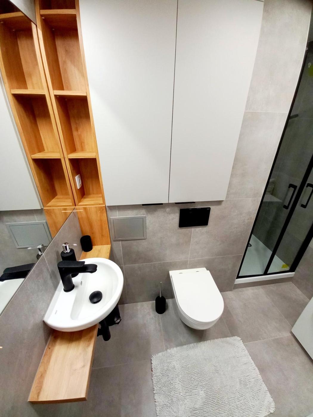 Apartament. The apartment provides a tea and coffee maker, a seating area, as well as a private bathroom boasting a shower and a hairdryer. Meals can be prepared in the well-fitted kitchenette, which features a stovetop, a refrigerator, a dishwasher and kitchenware. The apartment features a flat-screen TV with streaming services, a washing machine, a private entrance, soundproof walls as well as lake views. The unit has 1 bed. Apartament - 3 osobowy. Powierzchnia pokoju ok.: 22 mkw. ;
